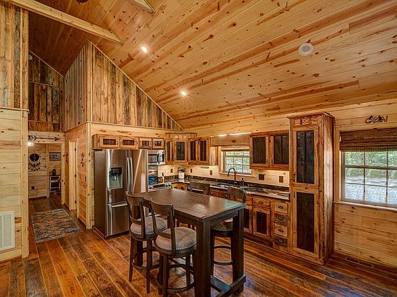 2 Bedroom, 2 Bath all wood cabin! This cabin has everything you would want in your mountain getaway. Sawmill wood floors, the perfect mixture of wood colors on the walls, pine burnt cabinets with old barn tin on the doors, granite in the kitchen and upgraded wood vanity tops in the bathrooms, rock fireplace and more. Outside is a large enclosed fence for your pets to enjoy, hewn D-Log siding, a full length covered porch, and plenty of room for parking or a garage. Only minutes to downtown Murphy!