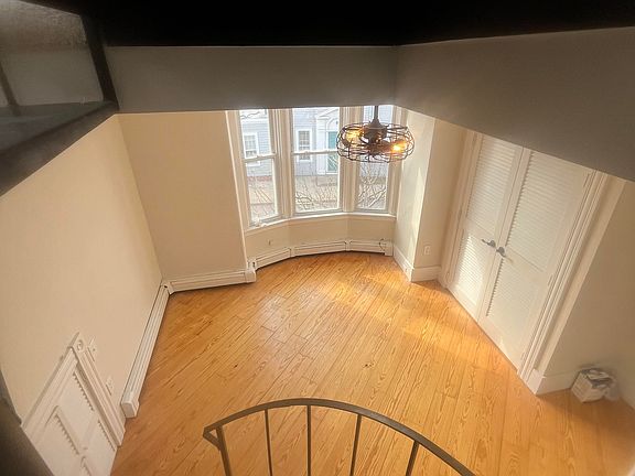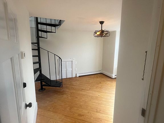one bedroom. second floor. downtown Hingham. parking for one. pine living and kitchen floors with spiral staircase leading to carpeted bedroom.