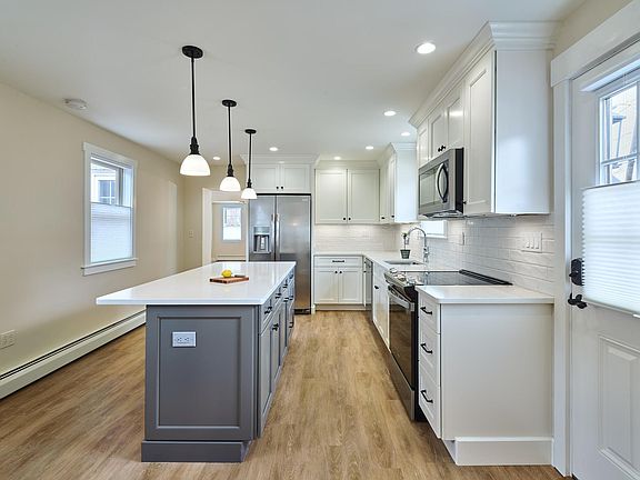 Large completely renovated 2 bedroom 1500sf townhouse on corner lot with many luxurious amenities. Recently renovated kitchen with quartz countertops, new appliances, tile backsplash, new cabinetry with roll-out shelves and a built-in coat/boot bench near back entrance. Half bath with new cabinetry and quartz countertops has adjoining laundry area with folding counter and new machines. Living room includes large areas for dining, TV/sitting and desk/reading/play. Upstairs, 2 nice sized bedrooms, full bath has double vanity sinks with quartz countertops and high-end medicine cabinets. Storage in dry unheated attic. Off street parking for 3 vehicles, grassed yard for each unit, lots of storage space inside and in secure shed. Friendly, walkable neighborhood close to walking trails, restaurants, Amtrak. Great elementary school close by in town and older kids go to the highly regarded Marshwood School System. Quiet dogs will be considered. Please submit a Zillow application before requesting a tour. Renter pays for heat, electricity, cable, trash removal, post office box. Renter shovels their walkways in winter.
