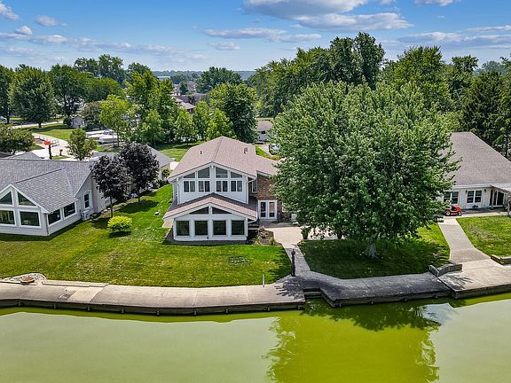 What a great lake opportunity! This LAKEFRONT home with 4 bedrooms and 3 full baths in Southmoor Shores has incredible lake views inside and out. Plus, you will not believe the amount of space & storage this home has! Conveniently, there is one bedroom on the first floor, plus the utility room is on the first floor. The three bedrooms upstairs are huge & two of them have walk-in closets. Plus, two of the bedrooms upstairs have sunrooms attached. Imagine sitting in your own private sunroom off of your master bedroom reading or relaxing while looking at this amazing, panoramic lakefront view! Master bedroom has ensuite bath and two walk-in closets. Downstairs you have a 25'X27' family room featuring a stone fireplace, cathedral ceilings & a picture window. The family room opens to a spacious kitchen and then another enclosed gorgeous sunroom overlooking the lake. You don't need to sit outside to enjoy the views, but there is a beautiful patio overlooking the lake & another paver patio near the front door. Schedule your showing and come see if this is the lakefront home for you. Approximately 107' of lake frontage. NEW 50 YR. ROOF 2023. Deeded dock (one side) in channel across from the home is a deeded dock (1st wooden dock in west corner). Extra storage/work space added to east side of garage. Agents see Broker's remarks.