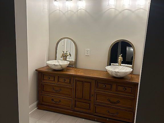 This spacious, welcoming home offers high ceilings, a large master suite, new fully tiled showers, durable large tile flooring throughout--all on a spacious lot, featuring a fenced in back yard.