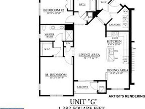 FIRST FLOOR Unit ~~~G~~~ is a 1,382 sq. ft. condo with 2 bedrooms and 2 full baths. Enter this corner unit into the foyer area with a walk in closet and into the spacious living room. The kitchen is off to the side with oak cabinets, Wilson Art counter tops, range and dishwasher. There is also a center island looking out into the living room and a separate dining area. The living room and dining area are carpeted as are both bedrooms. The master suite has a large walk in closet, private bath with stall shower, oak vanity and double cultured marble sinks. The kitchen, foyer, baths & laundry room all have vinyl flooring. There are sliding doors off the living room leading to a balcony.