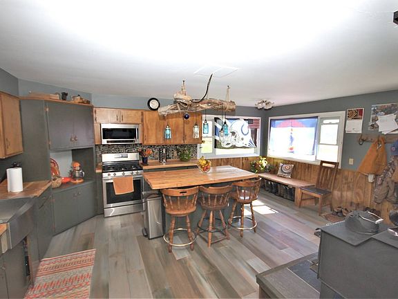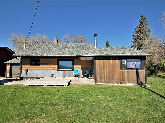 NO COVENANTS on 1.324 acres bordering Highway 287 just outside of the Ennis city limits. Many options as there is a single car attached garage and a 2+ car detached SHOP. The house, though built in 1910, has been remodeled multiple times and the current owners have upgraded the flooring, added barn wood accents, and remodeled the bathroom extensively (note the metal shower, wood counter tops, and custom tile mural). The finishing touches are Country COOL!! The house can be heated using the propane forced air but current owners almost exclusively use the wood stove located between the kitchen and living room. There is a brand new deck located just out the sliding door off of the living room surrounded by large trees giving you a private outdoor oasis. Underground sprinklers and the Madison River Canal add water to the back yard. All appliances including washer, dryer and wood stove will convey at closing.