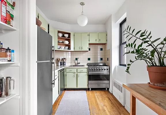 Bright Top-Floor Unit With Big Views Near Prospect Park! This cheerful, top-floor, 2 bed/1.5 bath co-op unit is overflowing with light and charm, featuring southern and northern exposures and beautiful views of the lovely homes in Prospect Park South. Timeless character and contemporary style combine in the thoughtfully designed interior, showcasing hardwood floors and abundant bright light throughout. The airy living room is enhanced by a wonderful custom-built library with storage. The dining area and kitchen have great views, a generous pantry, tile backsplash and stainless appliances including Smeg oven/range. Each bedroom features a ceiling fan, closet, great natural light and, easy access to the full bath. You'll love the convenience of at-home laundry with stacked Blomberg Energy Star washer and dryer in the half bath, as well as ample storage in 5 closets throughout the home. This pre-war, walk-up building offers easy access to the new Kensington dog park, the tennis courts and ball fields in the Parade Grounds, and roller skating and ice skating in Prospect Park. Just blocks to Cortelyou Rd, the B/Q on Church and the Fort Hamilton F train. This building has a lovely lobby complete with skylights, a shared backyard with a BBQ and play equipment for kids, plus dedicated storage in the basement for each resident. Pets by approval. Call today for a tour!