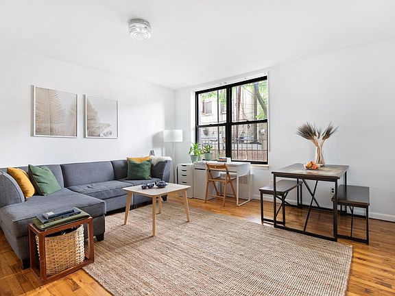Cozy and quiet home with large windows, efficient layout, and lots of charm! Originally a one bedroom home, temporary walls have been added to create an additional flex room giving the owner lots of options for use of space - a second bedroom, a home office, an exercise room are just a few options. Or, remove the wall, and create a wide open living space with a wall of windows and a circular flow between the kitchen/living/dining rooms. With a large south-facing window and a whole wall of built-in cabinetry, the living room also has plenty of room for a dining area. A spacious bedroom has an en-suite, windowed bathroom and abundant, freestanding closet and storage space. The bonus room is sunny and bright with two large windows. The kitchen has good counter space a dishwasher and open cabinetry. In-unit W/D are permitted in this building. This home has no wasted space and is conveniently located on the first floor providing quick and easy access to the buildings charming outdoor space. As convenient as having your own backyard! 68 Stratford is one of the few small co-op buildings in the Prospect Park South/Ditmas Park area with just twelve units. The building has free storage and bike storage and allows cats with board approval. Located a short distance from the Parade Grounds and Prospect Park, as well as vital Church Avenue which is home to some of the areas favorite spots - Lark, Wheated, and Der Pioneer to name a few. Just two blocks from Cortelyou Road amenities including a year-round farmers market, and easy access to the B/Q and F/G train lines.