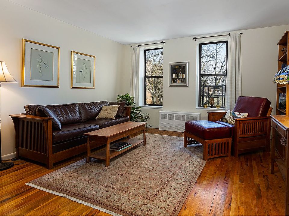 This very well-proportioned, charming unit with high ceilings and hardwood floors boasts 4 exposures for you to watch the sun bounce from. The large living room is bright and features floor-to-ceiling built-ins for all your books. The windowed kitchen has updated stainless appliances including a DW. The dining space can easily fit a large table, perfect for entertaining. The primary bedroom is huge with a large closet and has an en-suite full bath. There are two more bedrooms, both a good size, one larger than the other that you might think is the primary. The second bath is at the end of the hall between them and has a large linen closet, the perfect spot for you to put your new in-unit washer and dryer that the coop does allow. This apartment feels expansive, it has oversized windows and good closets throughout. This unit is a Must See!