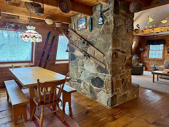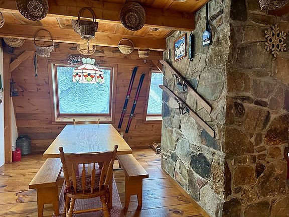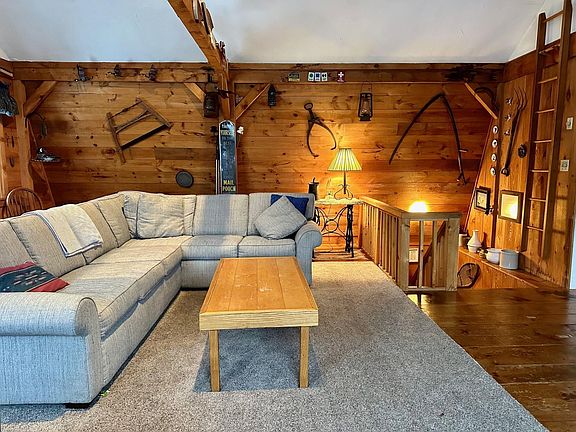 Discover the epitome of Vermont living in this charming barn-style home located in the serene Forest Farms community, just off the Stratton Mountain access road. Boasting three bedrooms and two baths, this idyllic property seamlessly blends rustic charm with modern comfort. The warmth of the wood finishes and floor to ceiling fireplace welcomes you into the open living spaces, while windows frame picturesque views of the surrounding nature. With a location that offers both tranquility and convenience, this Vermont retreat is the perfect blend of comfort and natural beauty.