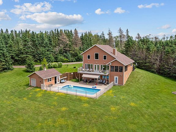 Enjoy privacy and tranquility in this feature-rich custom built home, in highly sought after Stanley Bridge. Just 100 meters away is deeded access to Stanley River, allows you a private boat dock from which to explore New London Bay and its connected waterways. Two deeded right-of-ways, one of which provides year-round access, lead to this stunning 3 level, 3 bedroom, 3 bath retreat, nestled behind a stand of healthy 40 foot spruce trees, running along the lower boundary of this gently sloping lot. Entering the house from the oversized garage, you will appreciate the step-free access through the combo mudroom, laundry, pantry and onwards to the chef's kitchen, equipped with electric convection wall oven, a 36" propane range with 6 burner cooktop, built-in dishwasher and full-size 18 cubic foot all-fridge. There's also an 18 cubic foot upright freezer in the mudroom/pantry, alongside the washer and dryer- 7 appliances in total. The bright open-concept main floor with 22 foot vaulted ceilings, seamlessly blends the kitchen, dining and living area into a very inviting gathering space. Just beyond the wood-burning fireplace , a door leads to the spacious 3 season screened room, where you will enjoy sunsets over the Stanley River, as you dine al fresco and enjoy the gentle sea breeze. Escape to the lower level for easy access to the 32 foot in-ground pool or play a game of pool, where in Winter you will appreciate the comfort of in-floor heat, combined with the whole home central air-ducted heat pump. An electrical power supply transfer switch ensures easy connection of a generator, remotely connected by buried underground wire to the storage shed. A cellular booster and antenna connect the alarm system to the monitoring station, while improving the home's cell phone reception. Hi-speed fibre internet is available. An adjoining lot (PID 774273) adding 0.92 acre is available for purchase.