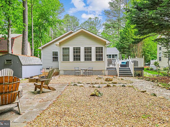 Now is your opportunity to own this beautiful turn-key home in an amenity rich community, minutes to the beach! This gorgeous home shows like a model with beautiful furnishings and designer touches throughout! Vaulted ceiling in the Dining & Living room. The Dining room has a large bay window and a built in window seat with storage and custom cushion. The kitchen boasts Corian counters, newer Stainless Appliances and a pantry. A beautiful 4 season Sun room off the dining room with queen size sleep sofa. and a large, bright addition to the primary bedroom are perfect for a home office/exercise room/den or 4th bedroom! Whatever you want them to be! Your primary suite offers a private bath and walk-in closet. The two guest rooms have a queen size bed and twin beds in the other that have never been used. Ample storage throughout the home, including the pull down attic and a storage shed in the yard. Your outdoor living is just as wonderful, starting with a cozy covered front porch with rocking chairs. A front/side deck lead to an outdoor patio and built in fire pit perfect for entertaining! You bring the marshmallows! Beautifully landscaped with numerous blooming shrubs and trees. Newer HVAC(2020), newer Roof(2018), Maintenance fee decking with vinyl railings. Gorgeous stone/slate walk ways. Large paved driveway. Amenity rich community includes Indoor/Outdoor Pools, Golf Course with Clubhouse, Yacht Club/Marina, Beach Club, Boat Ramps/Kayak Launches, Dog Park, Skate Park, Tennis/Pickelball, Farmers Market, Playgrounds, Lakes, Shopping, Restaurants & more!
