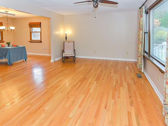 PRIVACY & PEACE AWAIT! Hardwood floors, tile, and new paint throughout this 3 bd/1.5 ba home w/ updated counter tops & full basement. Master has large walk-in closet. Enjoy hot water and stay warm all winter thanks to the wood burning outside furnace. Situated on 2 beautiful acres with mature trees & a front porch you must experience.