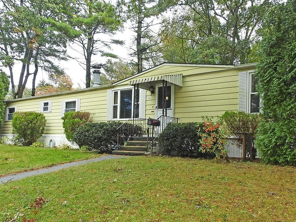 WAREHAM GREENTREE ESTATES, a 55+ manufactured housing community. Rest and reflect in the sunroom with private back yard. 2 bedrooms, open floor plan, 1,000 sq. ft manufactured home. Pet friendly park with restrictions, large treed lot and shed. SOLD "AS IS" condition.