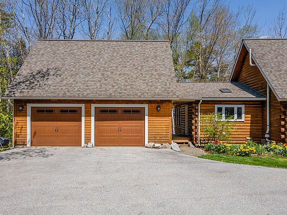 Beautiful flower gardens bloom throughout the season and the fully detached shed was structured to also act as a 2-car garage. Granite steps lead down to the stone patio where you can lounge with a burning fire pit while enjoying the water view. From here, you can follow the groomed trail leading down to the fully functional waterfront.