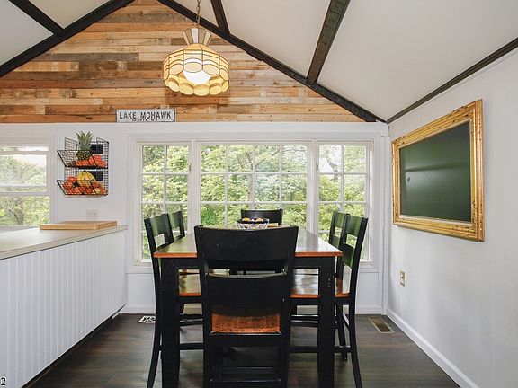 Lake Mohawk living for an unbeatable price! This wonderful 2br/1ba bungalow is deceivingly spacious. The foyer leads you into the living room, which boasts vaulted ceilings and a timeless fireplace. The eat in kitchen features updates, a connected dining area, vaulted ceilings, reclaimed wood wall, and gorgeous views! Finishing off the first floor are the homes two bedrooms, a sun porch, and the full bathroom. Downstairs features a finished play room that could double as an additional living quarters, office, etc. Also in the basement is a huge storage/utility area that makes this home so much more livable. The property features open grass as well as several tiered landscape elements, making this affordable lake retreat the perfect slice of paradise. Don't miss it!