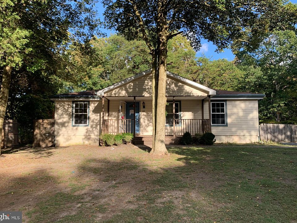 Ranch home featuring three bedrooms, two full baths, a full basement, and an all-season enclosed porch opening to a large deck overlooking the backyard with a detached storage building and shed. The home sits on an approximately 2-acre lot.