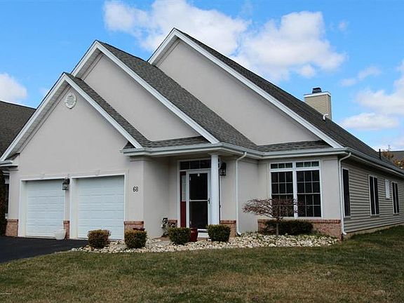 Meticulously kept ranch style home in one of the most sought after Active adult (55+ w 20% 48+ and 19+ requirement) communities in the area. Move in ready, 2 bedrm., 2 full bath home with open floor plan, vaulted ceilings and recessed lighting. Kitchen with 42'' Cabinetry and Corian counter tops. Separate laundry room, new laminate flooring through out. Newer heating and A C system (2016), new Hot water heater (2017). Gas fireplace for those cozy evenings.Clubhouse features: Pool, Fitness rm., Card rm., billiard rm., library sitting rm., and large party rm.