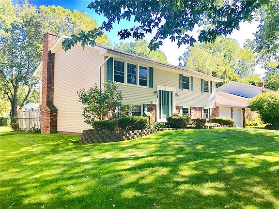 Charming, meticulously maintained 4 bedroom, 2 full bath 2200 sf raised ranch in desirable north Greece neighborhood. Features a bright & open floor plan with living room open to formal dining room, cozy kitchen with plenty of cabinet space & recessed lighting. The basement includes master bedroom with dual closets, additional living room with wood burning fireplace, full bathroom, and bonus room with large bar top and lots of storage. The spacious backyard is fully fenced and includes gorgeous Amish-built shed and patio with privacy fencing. Newer windows throughout, new furnace & central air 2017. This one is move-in ready, call today to see your new home!