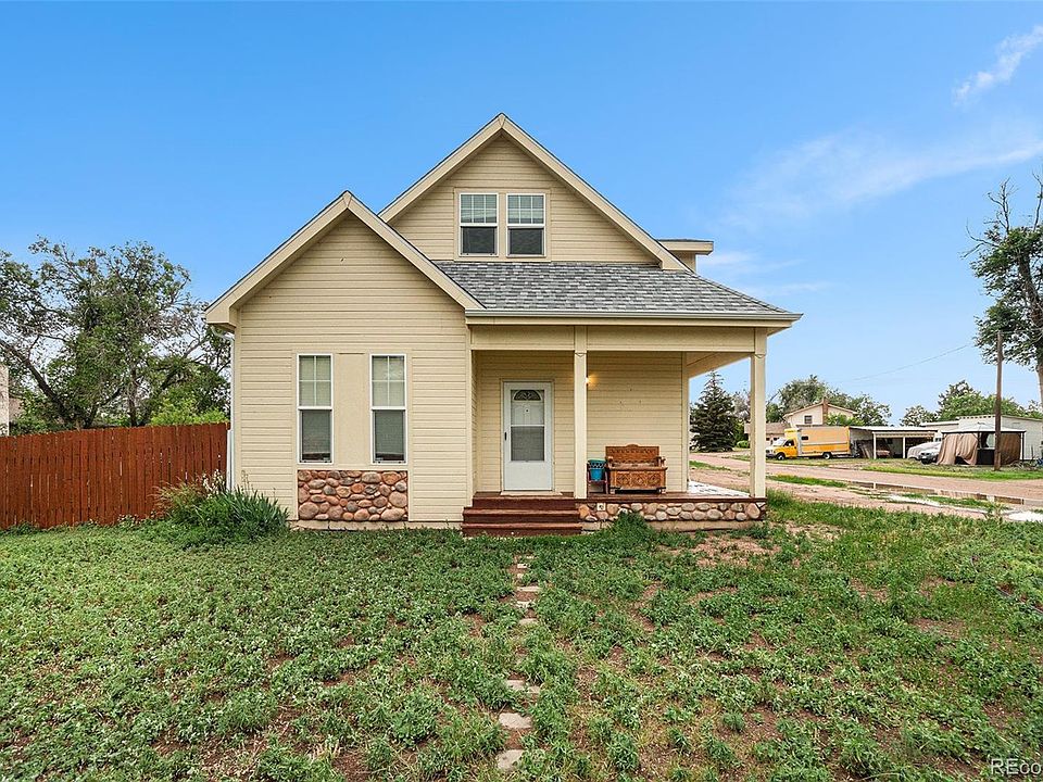 Welcome to this inviting home in the heart of Nunn, offering small-town charm just 20 minutes from Fort Collins. Set on a generous corner lot of over ¼ acre, the home features a stunning wraparound porch—perfect for relaxing, entertaining, or enjoying the peaceful surroundings. Inside, the living room greets you with vaulted ceilings and a bright, open feel. The eat-in kitchen boasts stainless steel appliances and plenty of room for casual dining. The main floor includes a primary bedroom with private en-suite bath, two additional bedrooms, a full bath, and a convenient laundry area with direct access to the backyard. Upstairs, you’ll find two expansive, versatile rooms with endless possibilities—game room, home office, guest space, or non-conforming bedrooms—along with a ¾ bath for added convenience. Outside, the large lot provides ample space to garden, play, or personalize to your liking. A 2-car garage completes the package. Located near a neighborhood park and with quick access to surrounding cities, this home is a fantastic opportunity to enjoy space, comfort, and potential—all in a peaceful community setting.
