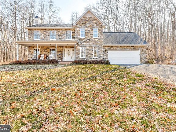 This stunning stone front home has been beautifully maintained. It is surrounded by mature trees for privacy. The large front porch is a great place to enjoy this scenery. The main level offers a large foyer with ceramic tile. The dining room feature a bay window and hardwood floors. The large living room includes a full wall stone fireplace, stunning focal point. The large kitchen has tons of cabinet and countertop space. It opens to the huge laundry room w/ plenty of space for extra storage. Upstairs are 3 generously sized bedrooms and 2 full and 1 half bath. There is a bonus room upstairs with skylights. This would make a great family room, playroom, office or even a 4th bedroom. There is a full unfinished basement for storage or later expansion. Outside a shed offers storage for your yard toys, far more convenient than taking up space in your 2 car garage. A patio in the rear of the home offers a great place for your summer BBQs! The seller will either pave the driveway or give an allowance for buyer to do so. The seller is also offering the home on 5.5 acres at $329,900. This home has so much to offer! Call for your showing today!