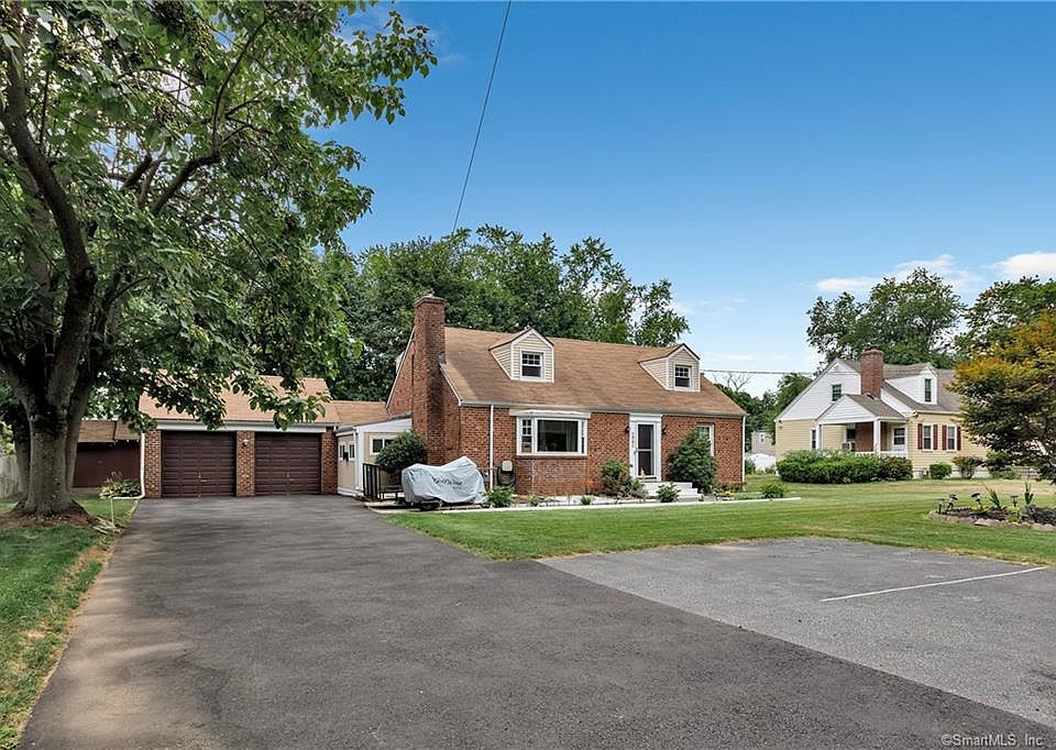 This beautiful 4+ bedroom, 2 bath expanded Treeland Brick Cape Cod with over 2,000 square feet plus a 2 car garage has gleaming hardwood flooring throughout! This home has a great layout for the holidays...or any day. Invite your guests in to your large sunny living room with a bay window & efficient pellet stove and enjoy gathering around the table in the spacious dining room....or drive into the two car garage and enjoy the mudroom space that includes a first floor laundry and access to a beautiful outdoor oasis that includes a patio and 2 sheds! The heart of the home is the kitchen has been recently remodeled (5-6 years ago) with white cabinets and stainless steel appliances. You have two primary suite bedrooms here...either on the main level, or on the second floor. And, don't miss the lower level that offers a man cave and a 5th bedroom space. Move in to this unique brick cape and enjoy....the siding and the roof are 5-6 years old, the windows are about 9 years old, the house is on gas heat and there are money-saving solar panels.