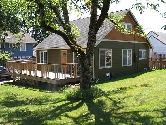 Charming remodeled 2-level Craftsman cottage with open floorplan, 3BR/2BA, large 2nd level master suite with full height ceilings. Oversized corner lot. Gladstone School District. Hardwood floors throughout. Large oversized detached garage currently used as shop can be converted to 2nd residence. Desirable neighborhood close to shopping, dining and I-205. Front yard deck, fenced backyard, patio. Large detached garage was originally a separate residence with separate sewer and electrical hookups. It is currently used as a shop but likely could be converted back to a separate residence if desired. Complete remodel in 2005 includes the following: Open floor plan on both levels, master suite upstairs Central forced air gas furnace installed Entirely new electrical system including 200 amp service; 100 am sub-panel to the shop Hardwood oak floors throughout All new double-paned vinyl windows All new plumbing in entire house New bathroom fixtures New Hardi plank siding New roof New insulation All new recessed lighting Kitchen island Stainless steel appliances