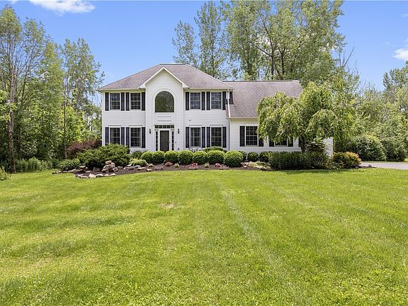 Welcome to this stunning custom built center hall colonial in Skaneateles. This home is situated on four private acres and offers all the luxurious amenities that you have been waiting for. Open the door and you are greeted by a sweeping two story foyer and an abundance of natural light! As you head towards the kitchen, you will see the perfect home office / den and half bath. The well appointed kitchen is a chefs delight with large granite island , gas range and plenty of cabinetry. The sunken living room is open to the kitchen creating the perfect space for your family and friends to gather. Rounding out this great room is the bright breakfast nook overlooking your private patio and serene surroundings. The first floor amenities continue on to the formal dining room and living room areas. The second level offers a spacious owners suite with custom walk in closet. This one of a kind en-suite has floor to ceiling custom four foot tiles, expansive walk in glass shower, and so much more. On this level there are an additional three bedrooms and full bathroom. The exterior offers a low maintenance garden and yard. All of this located in the award winning Skaneateles School District.