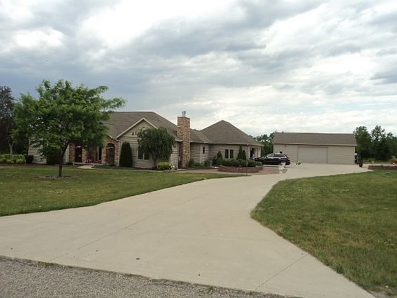 Stunning 6000+ square foot custom built home located on 1.25 acres. It was designed for comfortable entertaining using high end finishes - from the welcoming foyer with 10 foot ceilings, crown molding, two niches, and an open stairway leading to the entertaining spaces. Just off the foyer there is a large great room that has a beautiful stacked stone fireplace and vaulted ceiling. The kitchen is the heart of this home and a chef's dream utilizing top of the line stainless steel appliances, stone counters, center island, true "walk in" pantry, and separate desk area. This space flows into the sunroom that leads to the in-ground pool. There are three bedrooms on the main level including a large master retreat and main floor laundry. The lower level has two family room spaces joined together by a secondary kitchen- complete with custom cabinets, stainless steel appliances, and large island. A heated detached storage building is perfect for your cars, boats, and other toys- complete with workshop area and 12 foot overhead door.
