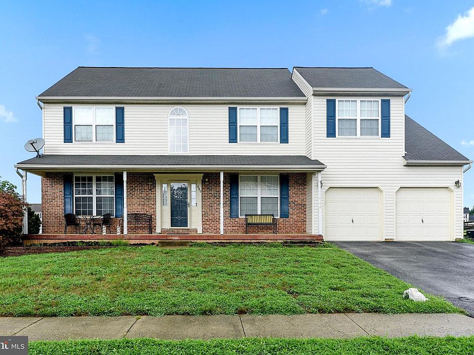 Located in Huntington Hills, this 5 bedroom, 3.1 bath colonial, brick front home is one of the largest homes, on one of the largest lots, in the neighborhood. Approaching the home, notice the 2 car garage, the large front porch and the decorative storm door. Enter the home into the 2 story foyer with hardwood floors, a palladium window, powder room and coat closet. Opening off the foyer on the left and right are the living and dining rooms. The dining room has hardwood floors and a door that can close it off from the kitchen. The family room, with recessed lighting and a ceiling fan, is separated from the kitchen by a half wall. Features of the kitchen are 42" cabinets, a 2-seater island, desk, eating area, 5 burner gas range, pantry, recessed lighting, stainless steel double sink, side-by-side refrigerator, built in microwave and dishwasher. A beautiful sunroom, with all furniture included in the sale, also opens into the kitchen. There are sliders leading to a large Trex deck with screened-in, composite gazebo. Another large 13' X11' room with a full bath and double closet, privately located on the first floor, can be used for a master bedroom, office/study or game room. All the rooms in this home are a generous size and the first floor has 9' ceilings. The upstairs master has a walk-in closet, a full bath and a ceiling fan. The full basement is unfinished and ready for your own creative design. It comes roughed in for another full bath. The floor plan of this home makes it perfect for entertaining as well as everyday living. There is even a shed to store your lawn equipment. Located close to commuting routes 13 and 1 as well as all other amenities. Make this your forever home today!