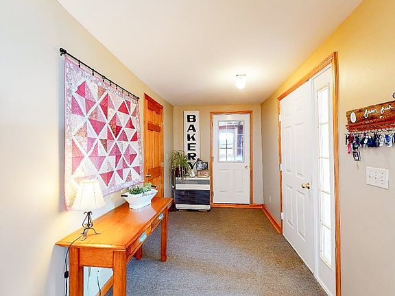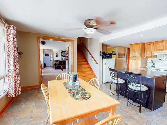 Beautiful sunsets from the cover porch of a spacious- updated farmhouse with room to play in the fenced-in yard, garage, or oversized kitchen baking...This house is move-in ready and has numerous features, such as a master on the first floor, an oversized two-car garage with vaulted ceilings to fit a lift, attached storage shed for wood, a separate one-car 12 x 24' detached garage with an additional carport built on to store recreation vehicles, fenced-in yard, a pad for large trailers, RV's or could be a future extension of the garage. The house has had numerous updates, including a new kitchen island, a new bathroom with a walk-in shower, an updated second bathroom, new carpet in upstairs rooms, freshly painted walls, a newer roof, and more. The property has been lovingly and meticulously maintained. Make sure to check out the 3D Tour today!