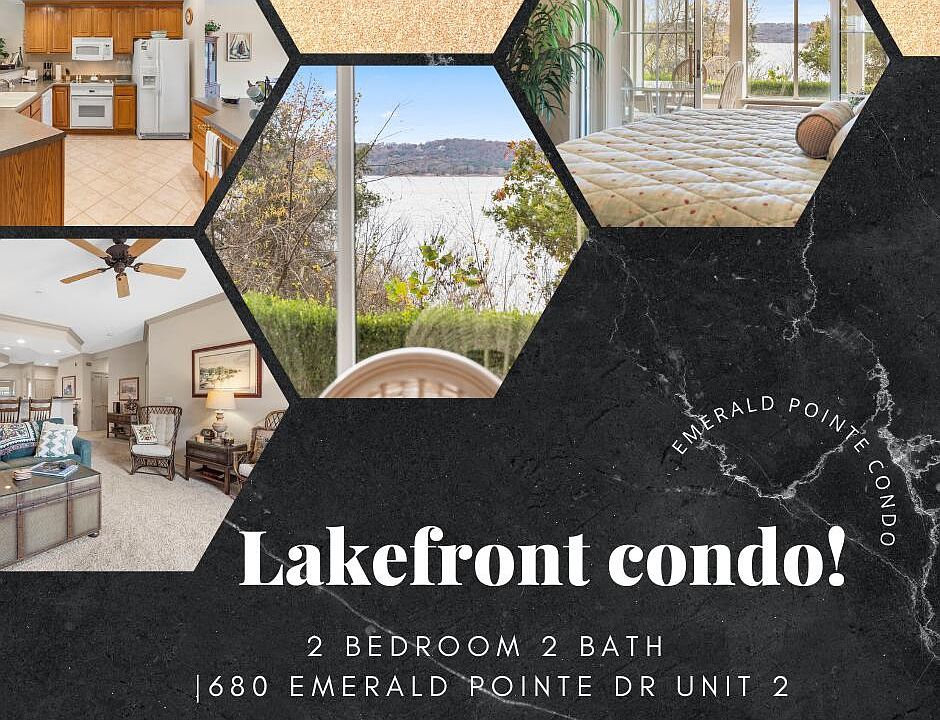 Lake Living at It's Finest!!! Imagine Waking Up to the Sounds of the Water Lapping on the Shore & Literally Stepping out Your Door and Being at the Water's Edge. You'll Enjoy the Year Round Beauty of Table Rock Lake Up Close & Personal Everyday.......You'll Love the Rare Outdoor Patio In this Ground Floor, Walk In Unit. You Will Be Impressed the Moment You Enter This Beautiful, Fully Furnished & Well-Maintained Condo in The Towers, Located in the Prestigious Gated Community of Emerald Pointe. The Chef in You Will Delight in the Spacious Kitchen w Plenty of Room and Storage. French Doors Lead to the Luxurious Master Bedroom Suite, w Double Vanities, Jetted Tub. Tray Ceilings, Recessed Lighting & Ceiling Fans Throughout. You'll Be Drawn to the Lake in the Four Season Room, Giving You Plenty of Space to Entertain & Relax. Bring Your Boat.....Marina w High & Dry Storage, Courtesy Dock & Courtesy Ramp Just Steps Away Make Lake Time So Easy & Convenient. You'll Love the Luxury Lifestyle in this Great Community w 2 Pools for You to Enjoy...One at The Towers & One Community Pool.....Clubhouse w Meeting Space and Full Kitchen, Fitness Gym & Tennis Court. At Emerald Pointe You Will Enjoy the Most Spectacular Sunsets Almost Every Evening. Peaceful Lake Living, Yet Quick Easy Drive to All the Attractions, Shopping, Dining, Medical, etc. Located on Table Rock Lake Between State Park Marina & Top of the Rock and Situated Across from Battleship Point, the Popular Jumping Cliffs. Come See for Yourself All that This Condo & Emerald Pointe Offer. Don't Wait....Begin Your Best Lake Life Today!