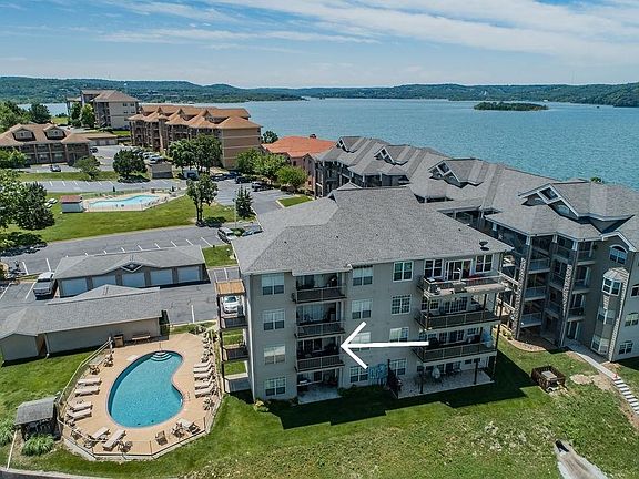 PRICE REDUCTION!! GREAT end unit with TWO decks overlooking Table Rock Lake and the swimming pool. 3 bedrooms & 3 full baths! WALK IN with elevator to all floors. Beautifully updated with granite counters, ceramic tile, newer carpet and wood laminate in dining area. Fully FURNISHED with 2 king beds and lots of great accessories & lake decor. Dry dock storage available with concierge service & courtesy boat slips directly behind condo building. NO nightly rental allowed in The Tower.