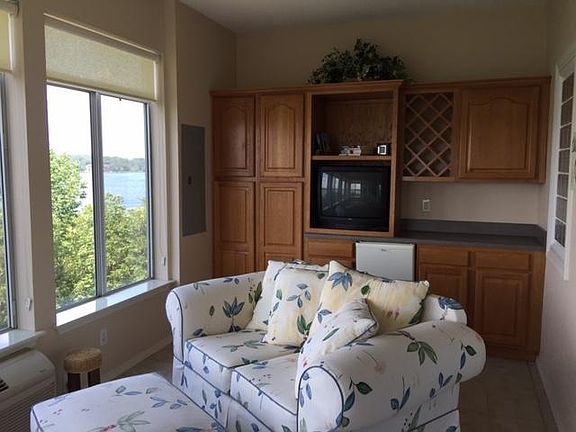 PANORAMIC LAKE VIEW! Furnished and beautifully maintained 2BR/2BA condo in one of Branson's premier gated communities. Open floor plan & separately heated & cooled sun porch. Master bath with jetted tub/steam shower, dual sinks & walkin closet. Near elevator. 2 swimming pools, tennis, clubhouse, dry dock & private boat launch with courtesy dock.