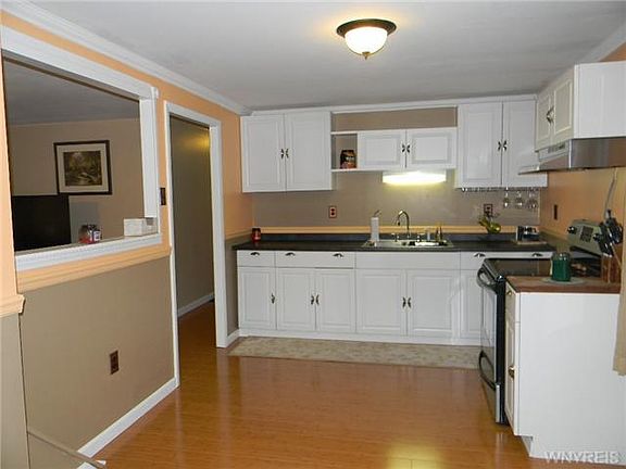 This 3 bedroom 2 bath ranch has attached garage and full walk out basement! New bamboo laminate flooring throughout the main floor & meticulously maintained. Updated bath, great deck, nice yard! Family room and 2nd bath in lower level. Woodstove helps keep gas bill low and home cozy. Newer hot water tank. Lots of updates! Just move in and enjoy.....