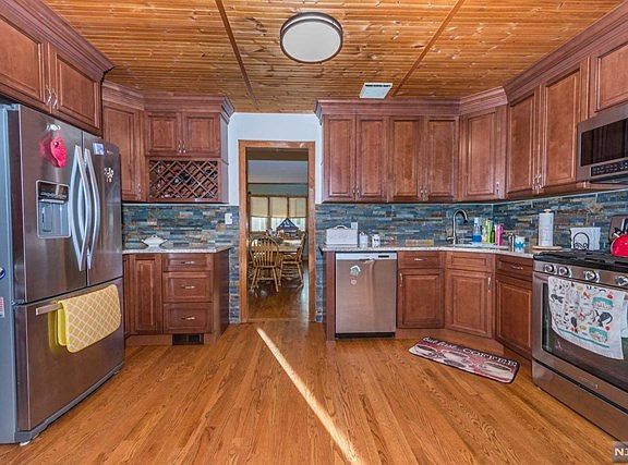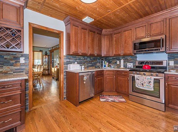 Imagine an average monthly electric bill of only $112.29!! Thanks to the solar panels that has been the average electric bill for the last 12 months. Welcome to your move in ready home in this quiet neighborhood. Enjoy hardwood floors, a brand new kitchen with appliances and a corner lot with fenced in backyard. As you enter, you will notice the open floor plan from the living room, through the kitchen and into the family room with vaulted ceilings. There are 2 bedrooms on the first floor with a full bath. The second floor has 2 large bedrooms with a living room and another full bath, making it perfect for extended family. The basement is partly finished with a half bath. Maywood has a vibrant town center, highly rated schools and is conveniently close to NYC. Make this house your home today!