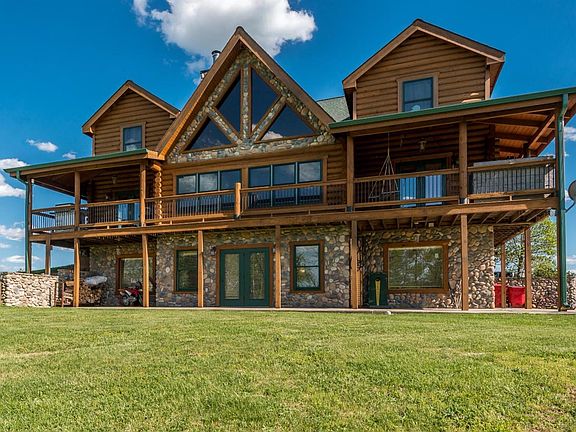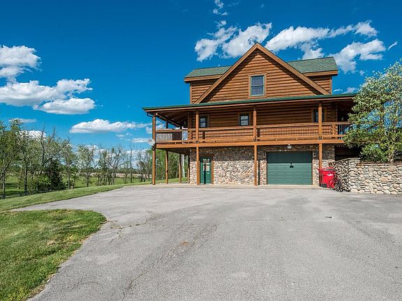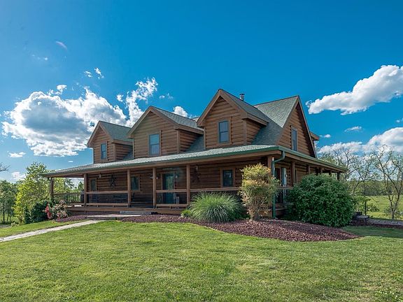 Plan your staycation in this gorgeous custom log home on 15 acres! Complete with extensive wrap around porches, gorgeous views of the gentle rolling pastures, pond, and stream, the outside is as inviting as the inside! The cracker-barrel-like stone fireplace is the centerpiece of this spectacular home! The geothermal system keeps it eco-friendly and economical! First floor master and utility room offers this floor plan versatility! A mother-in-law suite complete with kitchenette and fisher wood burning stove is accessible two ways in the walk out finished basement. All of this PLUS a 52' x 32' insulated shop with electric and water access and 12' x 52' wood shed! This Cabin has all the space you could need with a level of detail that you rarely find! 3 miles from I-64 puts you just minutes from Frankfort, Lexington, Louisville and Georgetown!!!