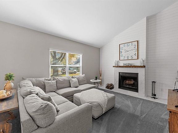 This adorable renovated home is ready to host the holidays! Your new 4-bed, 2.5-bath home offers over 2,000 sq ft of living space on a spacious corner lot. The cozy living room features a wood-burning fireplace framed with shiplap, and the vaulted ceilings will be perfect for your 15ft Christmas tree! The renovated kitchen boasts newer lvp flooring, granite countertops with center island, white shaker soft-close cabinets, stainless steel appliances & pantry. Upstairs, you'll find a large primary suite, two additional generously sized bedrooms and a hall bath with modern tile surround and a Bluetooth speaker for jamming out in the shower! The LL includes a 4th bedroom that can be used as an office/gym. This all-electric home has curb appeal & features an oversized 2 car garage with extra storage above and is just a short walk to Lakewood Park & Marina. Recent updates in 2022 include new carpet, windows, siding, soffits, fascia, gutters & hot water heater. You wont want to miss this one!