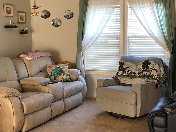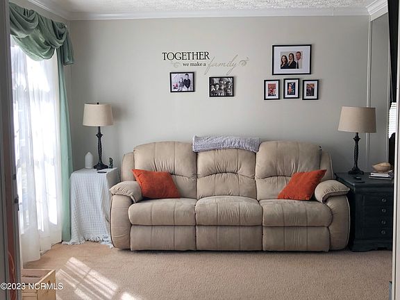 This off island location can't be beat! In under 10 minutes you can be sitting on the Beach at Topsail Island. Neighborhood has a small boat launch with parking on Landing Court. The spacious & well maintained 2006 Doublewide has a permanent foundation and sits on a beautiful .25 acre lot with nice hardwood trees. Home has 3Bedrooms 2Baths & features a split floor plan, formal dining room, huge 23x12 Living Room, large deck w/Awning and more storage than you could ask for in the 20x16 building/workshop or 16x8 shed. All appliances remain including Washer/Dryer and an upright freezer in the laundry room. Home sells Furnished less Sellers personal items. New roof in 2019 and HVAC just serviced in Sept 2023. Wooden playset in yard remains. Seller will remove contents of outside buildings prior to closing. Cedar Landing is a very quiet community just off island that has no HOA. Note: When leaving the property go (R) on Landing, (L) Driftwood, (L) Little Kinston, (R) @ roundabout at the foot of the bridge. This makes for speedy, low traffic and especially easy access to Topsail Island.