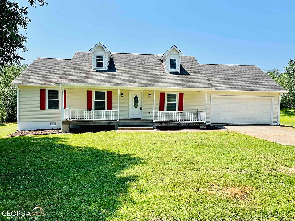 Welcome to this 3 bedroom and 2 bathroom home that has new vinyl siding and sits on 1.02 acres. Walk up the stairs to the large front porch that has new shutters, new front porch lights and a freshly painted front door. Enter into the foyer/ great room that has a fire place with gas logs. Off the great room is the dining room and kitchen. The kitchen has a microwave, oven/range combo, dishwasher and a refrigerator. The laundry room is great size and has cabinets and a closet. Down the hall are the two guest bedrooms and guest bathroom. Next you have the master bedroom and master bathroom. The master bathroom has a double vanity, separate shower and tub and a large walk in closet. Venture out to the back porch where you have new deck boards and railing. It has plenty of room for entertaining guest. upgrades done to the house- Vinyl siding added to home, windows replaced, roof replaced in 2008, septic baffle replaced and pumped 2018, interior painted other than kitchen, laudry room, master bath and guest bath, hvac replaced 2020, water heater replaced 2018, garage door replaced, gutters replaced, exterior doors replaced, exterior trim painted, back deck boards and railing replaced and crawl space door replaced.