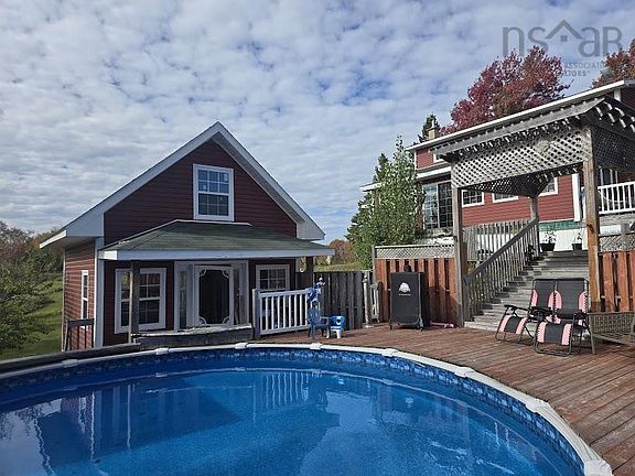 This property may be everything you have hoped for and more — a home with 3 bedrooms and 2 full baths, located in a rural farming area of Nova Scotia. Just 15 minutes to the charming Village of Tatamagouche for all amenities including groceries, banking, hospital, restaurants and new P – 12 school. 5 minutes to River John to enjoy several community groups, beaches and local shopping. Step onto the wrap-around deck, and you can already imagine sipping coffee while watching the back yard activities. The deck leads directly to a charming gazebo, which connects seamlessly to the above ground pool with pool house and storage sheds— a summer paradise. The pool has its own deck and stairs leading down to a comfortable and private firepit area, where there is a second shed, perfect for storing firewood and marshmallow skewers. The backyard is a haven. A pool house and pool sheds keep everything organized, from floaties to garden tools. Perhaps your evenings will be spent around the firepit, storytelling and stargazing! Inside the home, comfort reigns. The eat-in kitchen could be the heart of the home, and the sunroom with dining area offers views of the backyard and pool area. In the living room, the electric fireplace adds warmth and charm, and the main floor primary bedroom is its own private retreat, complete with an ensuite featuring a water jet tub, shower, the perfect place to unwind after a long day. Two efficient heat pumps kept the home cozy in winter and cool in summer, while the detached garage, fully wired with a workshop area, is your sanctuary for projects. This isn’t just a house. It is a forever home — the place where memories will be made!