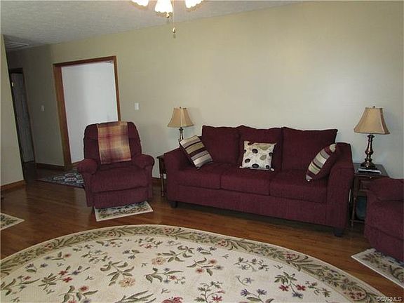 King William's "cleanest" offering. This 1740 sq ft 3 bedroom, 2.5 bath ranch is tastefully situated on 2.5 +/- quiet acres. The heat pump has been been replaced with a high efficiency 18 seer system and the home has been meticulously cared for by the current owners. Hardwood floors in the family room, all bedrooms and hallway really set this home apart from the competition. The "rec room" and office are also added bonuses! Other nice features include ceiling fans in almost every room and a central vac system. As we enter the warmer Spring season you will love relaxing on the screened porch. There is a 2 car carport and 2 nice vinyl sided sheds that convey as well. One 10x10 and one 12x18 with a roll up door. An extra wide driveway is an added bonus.