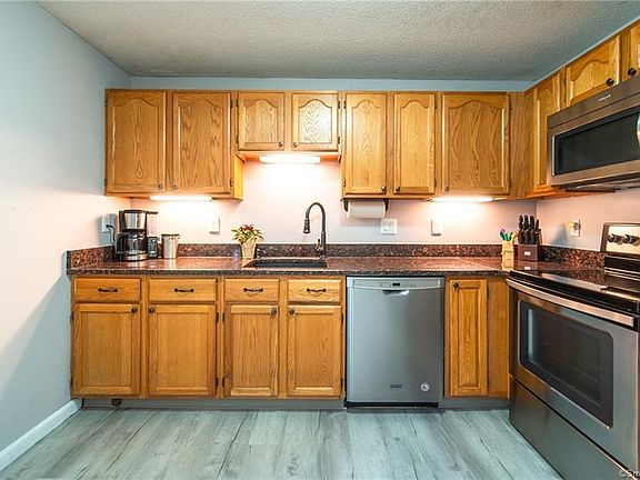 Why rent when you can own for less? 2 bedroom townhouse style condo with garage in a nice complex close to shopping and highways. Remodeled eat in kitchen with granite counters, stainless steel appliances and new waterproof luxury vinal floors on main level. Main level 1/2 bath and living room with lots of natural sunlight. Upstairs has new carpet and 2 good sized bedrooms plus a full bath. Lower level storage, laundry and 1 car garage. Low condo fees! New roof 2019. ***Complex is in the middle of getting powerwashed and repainted. There WILL NOT be an assessment for this!