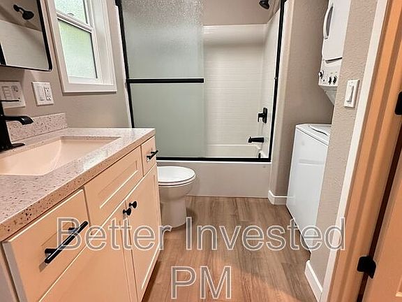 Discover the perfect blend of tranquility and convenience in this beautifully updated 1-bedroom, 1-bathroom home. Overlooking a serene creek, this inviting space features durable and stylish LVP flooring throughout and black accents, creating a warm and modern feel. The bright and airy living area offers peaceful views, ideal for relaxing after a long day. Enjoy the ease of in-unit washer and dryer, making laundry day a breeze.