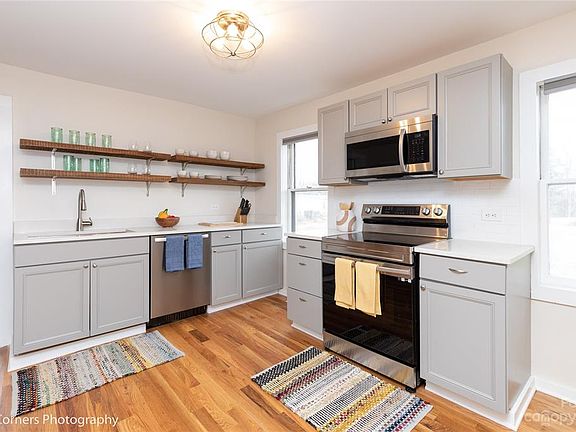 Seller is looking for HIGHEST & BEST OFFER to be submitted until Saruday, 02/18/2023 at 5PM. Freshly renovated and ready for move in! This 2 bedroom, 1 bath home has abundant natural light, and boasts a private back deck and ample yard. Has been used as a mid-term rental, and would work great for short term rental as well. Kitchen has tile backsplash, floating shelves, quartz countertops, farmhouse sink and stainless-steel appliances including a smart oven. New hardwood floors in main living areas, carpet in bedrooms and bathroom tile. Large laundry/mud room with built-ins and access to deck. There is plenty of off-street parking. Quietly situated just 3 miles to the new riverfront Silver-Line Park, 10 min to the River Arts District, 15 min to downtown Asheville, and 25 minutes to the Asheville Airport.