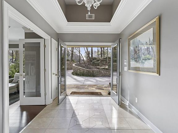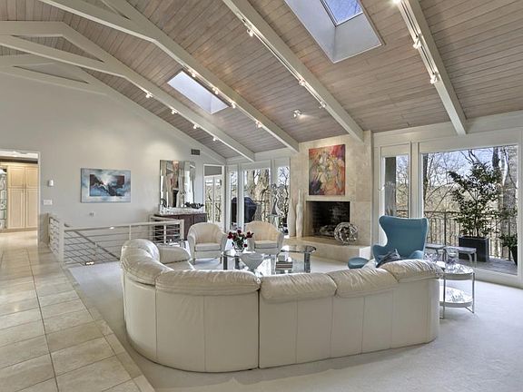 Gorgeous and sophisticated soft contemporary oasis with traditional comfort and style. This home is dramatic from the private driveway entrance to the breathtaking opening to the Great Room. Open, spacious, vaulted ceiling with a wall of windows to the woods. Simply a stunning Great Room. Adjoining is a cozy and warm Office/Den. The Kitchen is amazing with double stainless Thermador ovens, warming drawer, 5 burner gas cooktop, stainless built-in microwave, Miele dishwasher, and Sub-Zero freezer plus 2 additional drawers and a Sub-Zero refrigerator plus 4 extra pull out drawers. Wow! And a lovely and scenic casual breakfast area with all glass overlooking the tree tops. The beautiful Dining Room seats 12 plus, but is expandable through an adjoining Keeping Room to seat as many as 30 guests. Also on the main level is the Laundry Room and attached Kitchen half bath as well as a second front of the house Guest Powder Room. Finally you reach the light and spacious Owner's Suite with corner windows and glamorous spa bath cabinetry, separate tub and shower, and his and hers custom built-out closets. The lower level of the house has a wonderful, fun, open Entertainment Family Room with gas fireplace, French doors to walk-out deck, and a complete Kitchen with refrigerator, stove, and dishwasher. Additionally, there are 4 bright, spacious, and charming Bedrooms with 2 shared contemporary Baths. A large glass-doored Office or Fitness room completes the lower level of this glamorous, comfortable, and sophisticated home.