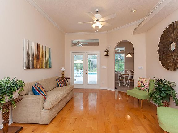 Wow! Magnificent family pool home on an estate sized lot w/ scenic nature views*Walk into a spacious floorplan that is warm & inviting for family & friends*Light/bright kitchen overlooks family area w/fireplace*Formal LR/DR*Four spacious bedrooms w/plenty of closet space are downstairs*Split bedroom layout including a large master suite*Beautiful hardwood stairs lead to the bonus room for family entertaining or 5th bedroom*One acre of nature surrounds you with blooming flowers, orange, lemon and fig trees.*Enjoy the serenity from the screen enclosed sports pool*Arrange a volley ball game or campout night on your property under the stars. So many great family memories can come true with this home!! No CDD fees.Trane HVAC, Termite Bond & Shallow Well for Irrigation