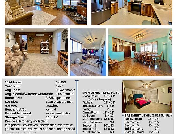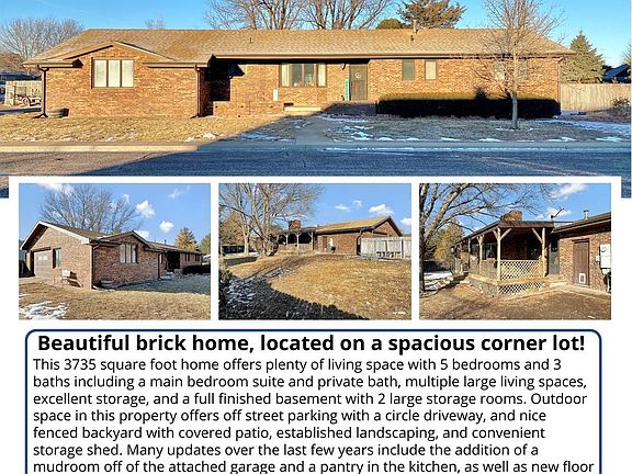 Beautiful brick home, located on a spacious corner lot! This 3735 square foot home offers plenty of living space with 5 bedrooms and 3 baths including a main bedroom suite and private bath, multiple large living spaces, excellent storage, and a full finished basement with 2 large storage rooms. Outdoor space in this property offers off street parking with a circle driveway, and nice fenced backyard with covered patio, established landscaping, and convenient storage shed. Many updates over the last few years include the addition of a mudroom off of the attached garage and a pantry in the kitchen, as well as new floor coverings, new wall and ceiling texture, beautiful accent wall in the basement, new kitchen appliances, an updated roof, and more!