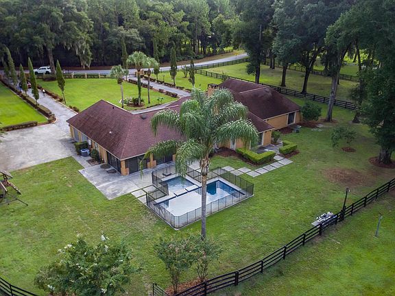 First time on the market! This Elegant Westgate Mini Farm, sits on 3.41 Acres, the custom 4/3 and 1/2 pool home has every upgrade. All new paint inside and flooring, fabulous chefs kitchen with custom cabinets top grade appliances, gas range, quartz cambria counter top and custom lighting. The living space is just beautiful with the new floors, paint and lighting, with great room family room with fireplace, formal dining room. Master bath has new tiled walk in shower, guest rooms have their own baths and a fabulous salt pool. The barn is designed by a horseman with each stalls turnouts and 3 large pastures. Lush landscaping and desired location, this home won't last long.