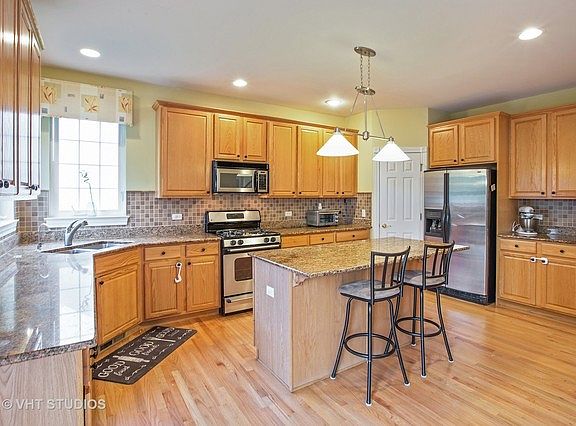 Well-maintained Neocolonial home built by Legacy Fine Custom Homes features a welcoming, grand 2 story foyer & family/great room w/brick fireplace, large, open kitchen w/granite counters, SS appliances, eat-in area & sliding glass doors leading to freshly painted deck. Detailed crown molding in living rm & dining rm, spacious office, generously sized laundry rm, & deep 3 car garage complete the 1st floor. Hardwood floors in high traffic areas have recently been refinished. All bedrooms are located on the 2nd floor including Master suite w/tray ceiling & walk-in closet, Princess suite, & 2 other generous sized BRs w/another full bath. Oversized catwalk/loft overlooks foyer & great rm. Newer siding & roof. Walkout basement is finished but you can still add your finishing touches to create a 5th BR/exercise rm/2nd ofc & theater rm. Plenty of storage! Enjoy sunsets from your brick patio & deck. Access to bike/walking path only 1 block away. Close to everything including HD Jacobs HS!
