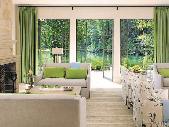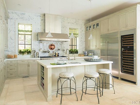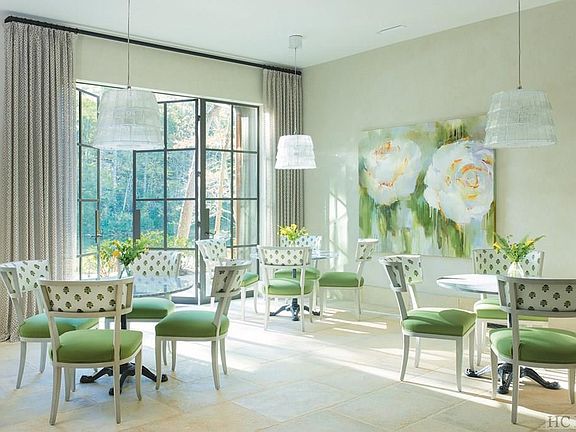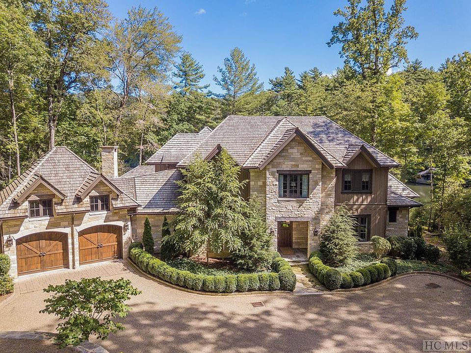 This newly-constructed, stone mountain home is the inspiration of internationally acclaimed, award-winning author of fourteen interior design books. Built by local builder John Lupoli, the light, bright interior is contemporary. Highlighting streamlined silhouettes, strategic use of color and enviable architectural details, the home spotlights glamour and comfort. A curated mix of the relaxed and refined, the past and the present are showcased in this European-inspired home, located in the prestigious private community of Wade Hampton--with its famed Tom Fazio golf course, which is considered one of the finest golf courses in the United States. Perched in the estate section of Wade Hampton with a commanding view of a private lake, this two-story retreat is constructed with Texas cut limestone. The roof is heavy shake. Iron wall-mounted fixtures and lanterns are by Paul Ferrante. The finest quality workmanship and materials are evident throughout. The 2.64 acre lot is naturally landscaped and the grounds are a perfect extension of the exquisite living and entertaining areas of the home. The entry invites you with Blonde Barr stone flooring and base from Paris Ceramics imported from France. Glazed walls are the backdrop for a Murano pendant by Barovier, c. 1970. The Great Room has steel doors opening onto a terraced area tempting you to stroll or navigate across the lake on a paddle boat or kayak. (The lake is stocked annually with trout and bass.) The 18th Century limestone mantel with trumeau grounds one side of the room while the entertainment sitting area (complete with television) balances the other side. As you enter the open dining and kitchen areas, a full bar welcomes. The stainless steel topped bar has a stainless steel sink and fittings, a Sub-Zero undercounter refrigerator, a Sub-Zero undercounter Ice-Maker and a large Sony flat screen television. This home is perfection personified.