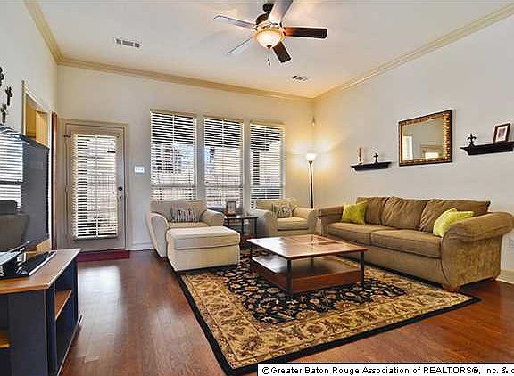 Beautiful home in Summerwood with all the extras. Home has 3BR/2BA with an office and a fabulous split floor plan. Kitchen has granite tile counter tops, tile backsplash and floors, double sink and decked out with tons of cabinets. Wood floors in living room and down the hall with ceramic tile in the kitchen. The living room is spacious with lots windows for natural light. The spilt floor plan offers privacy to the spacious master bedroom. Master bath has a separate shower, 6ft jetted tub, his/her sinks and a large walk-in closet. Laundry room is spacious with shelving. Back yard is fully fenced. Just a few of the many other features include a covered patio perfect for entertaining, the BONUS room that can be used for an office, a security system, large walk-in closets and a mature landscaping. Home is spotless and move-in ready! Located close to LSU, Bluebonnet, Mall of Louisiana, Perkins Rowe as well as easy access to I-10.