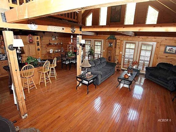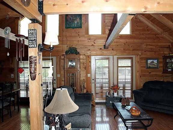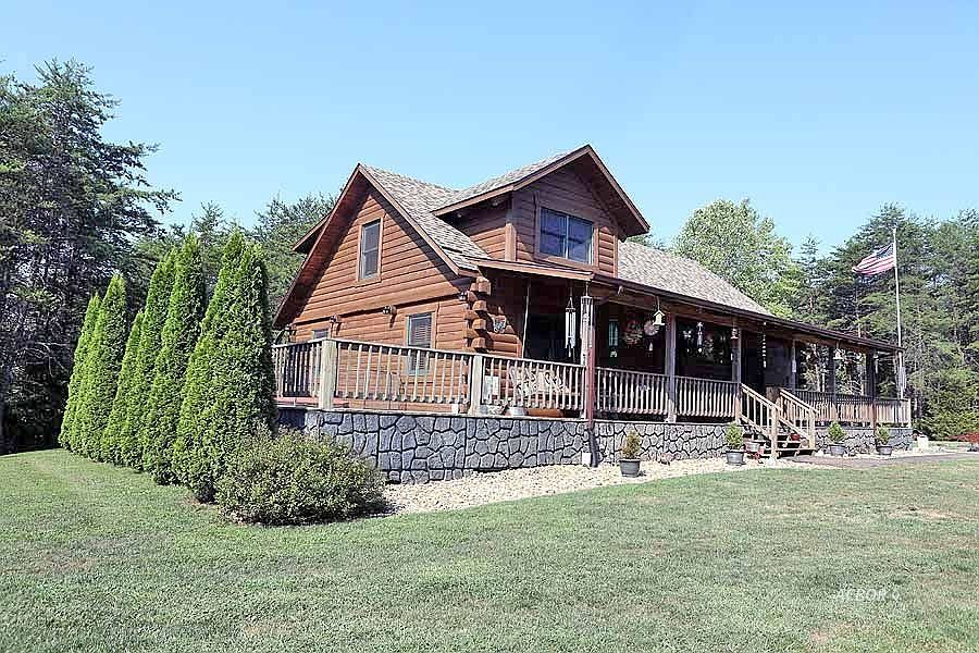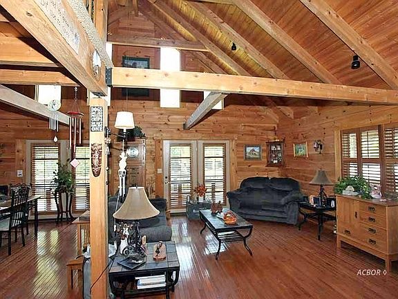 Beautiful log home w/wrap around porch in beautiful wooded setting. Window full Great Room w/vaulted, beamed ceiling open to dining and recently updated kitchen w/quartz countertops, several cabinets and pantry with pull out drawers, island eating bar. This area boasts hardwood floors and double French doors leading up to deck. First floor offers 2 bedrooms, bath and laundry. Upstairs has loft sitting area overlooking the first floor, bedroom and bath. Free standing wood stove heats this entire area comfortably during the winter months. Finish basement w/outside entry features lg FR, 2 BRs, lg bath w/Jacuzzi tub, shower, good storage. Ceiling has 1-hour fire rating. Good closets through-out. Home stained in 2017. Appalachian Log Home w/25 steel perimeter rods installed at construction for extra support and strength. U-shaped wrap porch w/covered front porch, 2 sunny side decks w/swim spa. Custom wood shutters through-out most of home (Owner Crafted). 32 x 50 metal bldg. w/200 amp service, elec HP/CA & propane ceiling mounter heater. Every Handy-Person, Crafter or Car/Motor vehicle enthusiast dream. Large concrete pad & water completes this area.